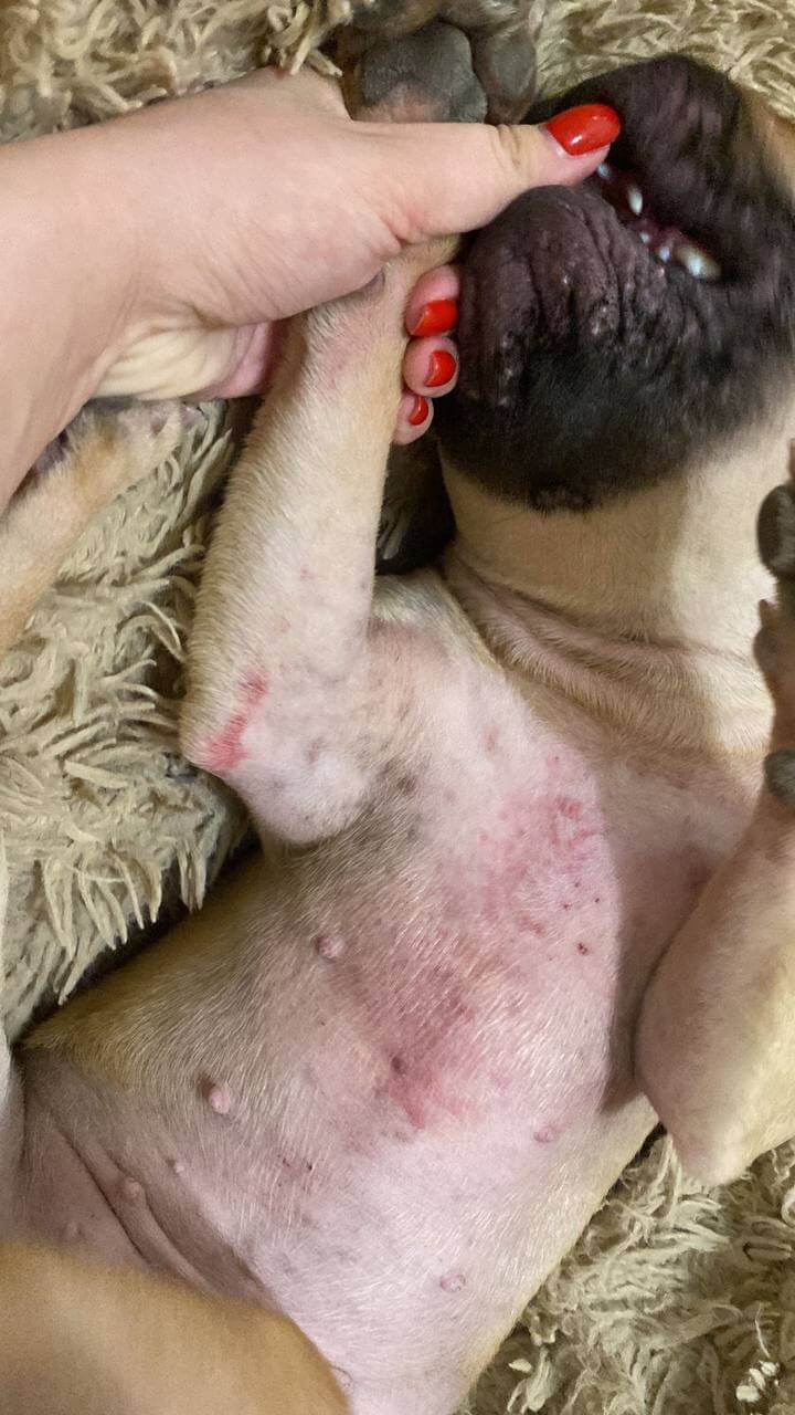 Busya was grappling with atopic dermatitis, scabies, and diarrhea. Her owners tried relieving her symptoms by providing her with natural foods. However, the diet they selected was unsuitable and only contributed to the dog's discomfort. However, after adopting the custom dietary plan I created, along with my feeding recommendations, Busya's red spots disappeared. Her itching stopped, and her digestive problems were resolved. The attached images display her condition before and after the introduction of my specialized diet.